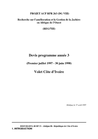 Utilisation soumise à autorisation de l'auteur ou du Cirad. Doc Technique_Projet jachere CI_Devis programme 3.pdf Télécharger (83kB) | Prévisualisation |