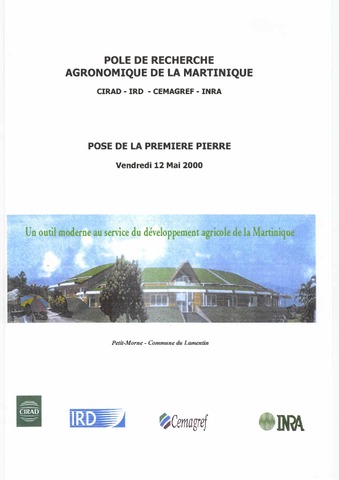 CIRAD - FRA, IRD - FRA, CEMAGREF - FRA, INRA - FRA. 2000. Pôle de recherche agronomique de la Martinique, Petit-Morne, commune du Lamentin : pose de la première pierre, vendredi 12 mai 2000. Petit-Morne : CIRAD, 13 p.