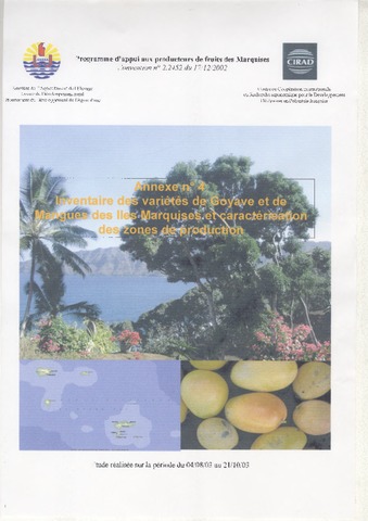 CIRAD - PYF. 2003. Inventaire des variétés de goyave et de mangues des Iles Marquises et caractérisation des zones de production. Annexe n°4. Programme d'appui aux producteurs de fruits des Marquises, Convention n° 2.2452 du 17/12/2002. s.l. : s.n., 62 p.