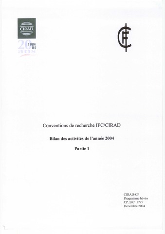 CIRAD-CP - FRA. 2004. Bilan des activités de l'année 2004. Partie 1. Montpellier : CIRAD-CP, 103 p. Autre type de numéro : CP_SIC 1775