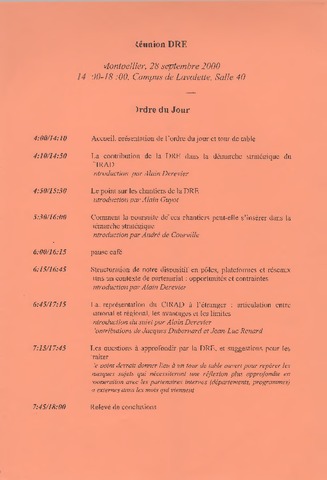 CIRAD-DG-DRE - FRA. 2000. Réunion DRE Montpellier 28 septembre 2000. Montpellier : CIRAD, 157 p.