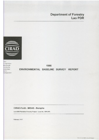 CIRAD-FORET - FRA. 1997. Department of forestry Lao PDR. 1996 environmental baseline survey report. Montpellier : CIRAD-Forêt, 98 p.