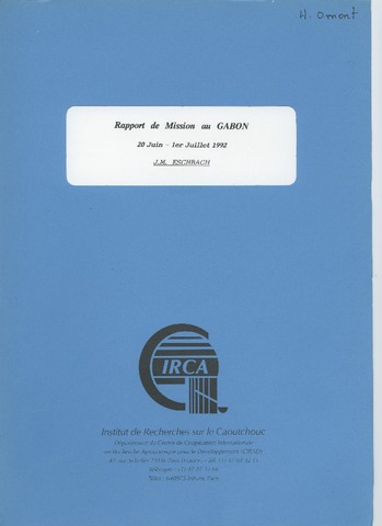Eschbach Jean-Marie. 1992. Rapport de mission au Gabon 20 juin au 1er juillet 1992. Paris : CIRAD-IRCA, 41 p.