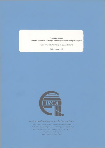 De Livonnière Hugues. 1992. US/THA/89/017 Rubber products testing laboratory for the Bangkok region. 2ème rapport d'activités. Paris : CIRAD-IRCA, 35 p.