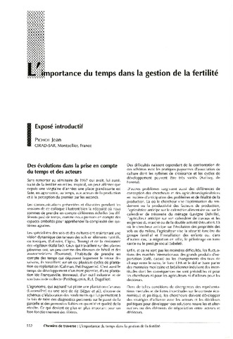 1996. L'importance du temps dans la gestion de la fertilité. Exposé introductif.