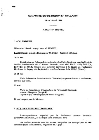Martin-Prével Pierre. 1991. Compte rendu de mission en Thaïlande, du 19 au 28 mai 1991. s.l. : CIRAD-IRFA, 6 p.