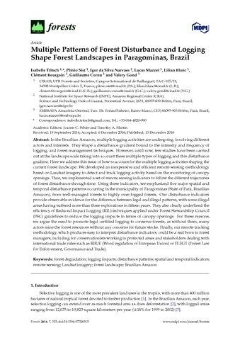 Tritsch Isabelle, Sist Plinio, da Silva Narvaes Igor, Mazzei Lucas, Blanc Lilian, Bourgoin Clément, Cornu Guillaume, Gond Valéry. 2016. Multiple patterns of forest disturbance and logging shape forest landscapes in Paragominas, Brazil. Forests, 7 (315), 15 p.
