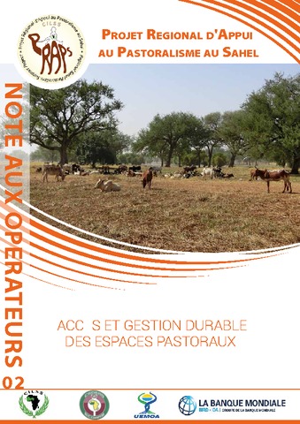 Bonnet Bernard, Dia A.H., Guibert Bertrand, Gaye Ibrahima Diop, Ndiaye Paul, Touré Ibra. 2016. Accès et gestion durable des espaces pastoraux. s.l. : PRAPS-CILSS, 8 p. (Note aux opérateurs / PRAPS, 02)