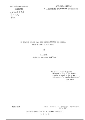 Nicou Robert. 1977. Le travail du sol dans les terres exondées du Sénégal motivations - contraintes. Bambey : ISRA, 50 p.