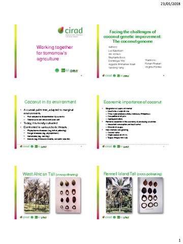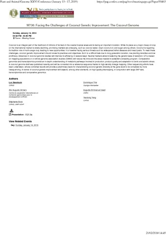 2018. Facing the challenges of coconut genetic improvement: the coconut genome [W736].