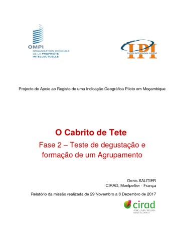 Utilisation soumise à autorisation de l'auteur ou du Cirad. 2017 Moçambique 2a fase_Indicaçao Geografica Cabrito de Tete_12 2017_D Sautier OMPI.pdf Télécharger (1MB) | Prévisualisation |