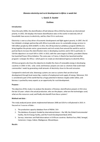 2016. Biomass electricity and rural development in Africa: a weak link.