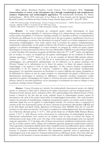 2018. Taxinomic characterisation of cotton seeds (Gossypium ssp.) through morphological and morphometric analyses. Exploratory and archaeological approaches..