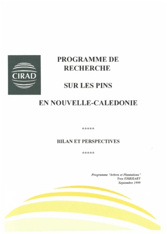 Ehrhart Yves. 1999. Programme de recherche sur les pins en Nouvelle-Calédonie: Bilan et perspectives. Nouméa : CIRAD-FORET, 46 p.