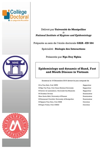 Duy Nghia Ngu. 2016. Epidemiology and dynamic of hand, foot and mouth disease in Vietnam. Montpellier : Université de Montpellier, 196 p. Thèse de doctorat : Biologie et interactions : Université de Montpellier