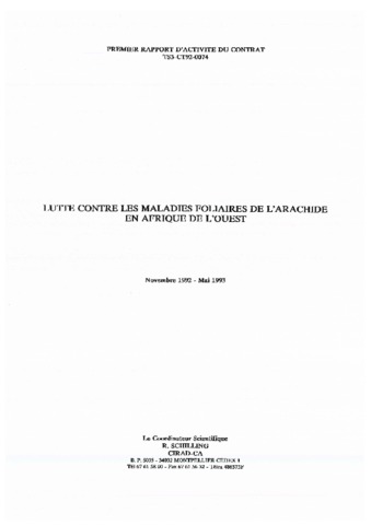 Paré Denis, Strange Richard, Sankara Philippe, Schilling Robert. 1993. Lutte contre les maladies foliaires de l'arachide en Afrique de l'Ouest, Novembre 1992 - Mai 1993. Premier rapport scientifique du contrat TS3-CT92-0074. Montpellier : CIRAD-CA, 50 p.