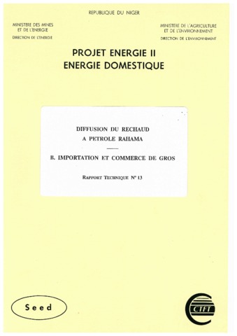 Matly Michel. 1991. Diffusion du réchaud à pétrole Rahama. B. Importation et commerce de gros. Rapport technique n°13. s.l. : CIRAD-CTFT-Seed, 18 p.