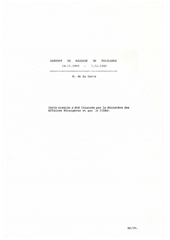 De La Serve Michel. 1990. Rapport de mission en Thaïlande 14.11.1989-2.12.1990. Paris : CIRAD-IRCA, 29 p.