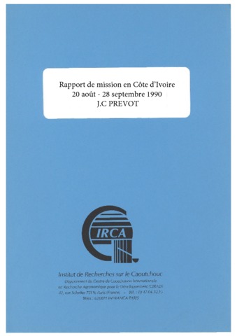 Prévôt Jean-Claude. 1990. Rapport de mission en Côte d'Ivoire 20 août - 28 septembre 1990. Paris : CIRAD-IRCA, 28 p.