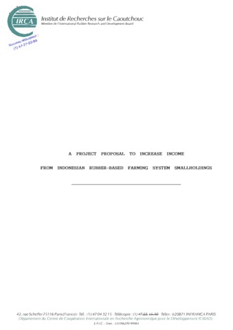CIRAD-IRCA - FRA. 1990. A project proposal to increase income from Indonesian rubber-based farming system smallholdings. Paris : CIRAD-IRCA, 22 p.