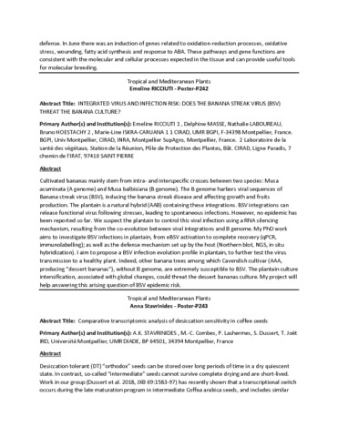 2018. Integrated virus and infection risk: does the banana streak virus (bsv) threat the banana culture? [Poster-P242].