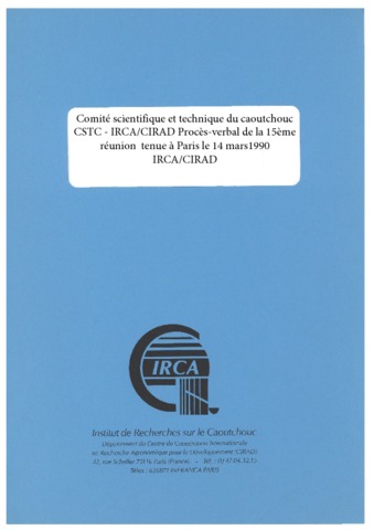 In : Comité scientifique et technique du caoutchouc, CSTC - IRCA/CIRAD. Procès-verbal de la 15ème réunion. CIRAD-IRCA