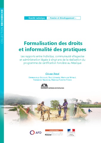 Boue Céline, Bouquet Emmanuelle, Léonard Eric, Mitaut Mathilde, Valencia F., Fuentes Ponce Mariela. 2021. Formalisation des droits et informalité des pratiques. Les rapports entre individus, communauté villageoise et administration légale à vingt ans de la réalisation du programme de certification foncière au Mexique. Paris : Comité technique « Foncier & développement »-AFD-MEAE, 70 p. (Collection Recherche)