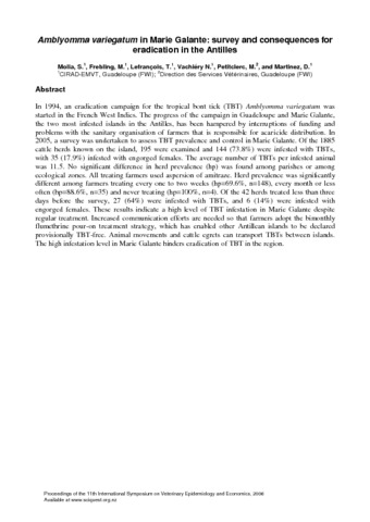 2006. Amblyomma variegatum in Marie Galante: Survey and consequences for eradication in the Antilles.
