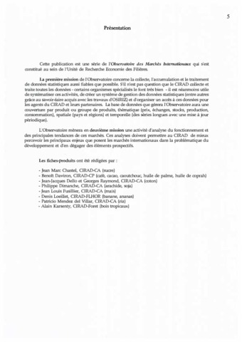 In : Fiches produits n. 2. Mise à jour juillet 1994. Observatoire des marchés internationaux. CIRAD-CP