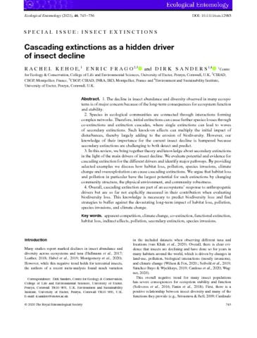 Kehoe Rachel, Frago Enric, Sanders Dirk. 2021. Cascading extinctions as a hidden driver of insect decline. Ecological Entomology, 46 (4), n.spéc. Insect Extinctions : 743-756.