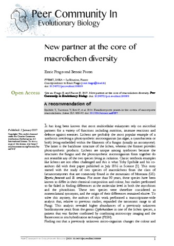 Frago Enric, Facon Benoît. 2017. New partner at the core of macrolichen diversity. s.l. : Peer Community in Evolutionary Biology, 2 p.