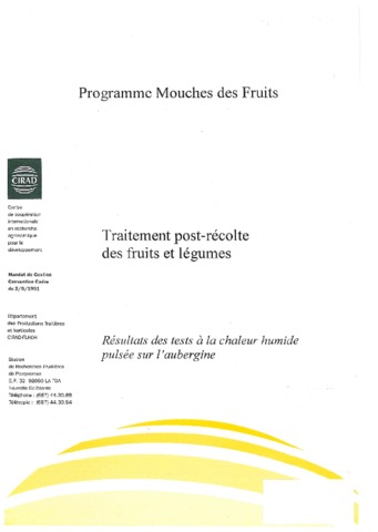 CIRAD-FLHOR - REU. 1997. Traitement post-récolte des fruits et légumes. Résultats des tests à la chaleur humide pulsée sur l'aubergine. La Foa : CIRAD-FLHOR, 20 p.
