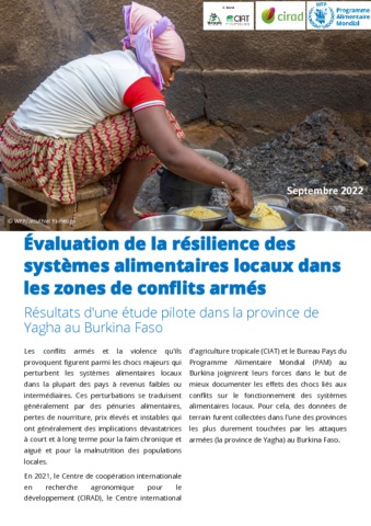 Bene Christophe, Maître d'Hôtel Elodie, Pelloquin Raphaël, Badaoui Outman, Garba Faroukou, Sankima Jocelyne, Konfé Zakaria, Botoni Guy Stephane. 2022. Évaluation de la résilience des systèmes alimentaires locaux dans les zones de conflits armés. Résultats d'une étude pilote dans la province de Yagha au Burkina Faso. Rome : Bioversity International-CIAT, 7 p.