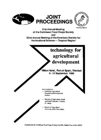 In : Technology for agricultural Development: Joint Proceedings of the 21st Caribbean Food Crops Society and the 32nd Annual Meeting of the American Society of Horticultural Science, Tropical Region. CFCS, ASHS