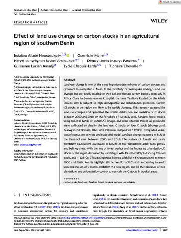 Houssoukpèvi Issiakou Alladé, Le Maire Guerric, Aholoukpè Hervé Nonwègnon Sayimi, Fassinou Démayi Jorès Mauryo, Amadji Guillaume Lucien, Chapuis-Lardy Lydie, Chevallier Tiphaine. 2023. Effect of land use change on carbon stocks in an agricultural region of southern Benin. Land Degradation and Development, 34 (5) : 1447-1463.