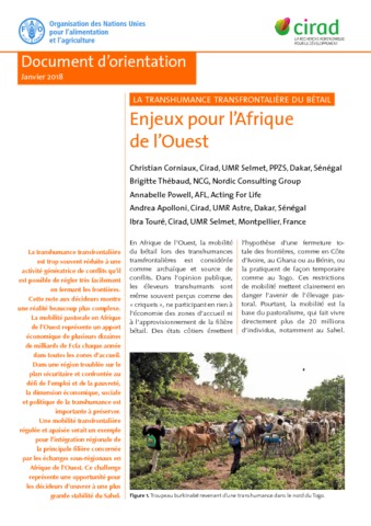 Corniaux Christian, Thébaud Brigitte, Powell Annabelle, Apolloni Andrea, Touré Ibra. 2018. La transhumance transfrontalière du bétail. Enjeux pour l'Afrique de l'Ouest. Rome : FAO-CIRAD, 8 p. (Document d'orientation / FAO)