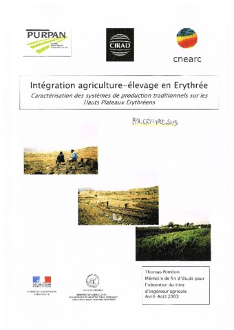 Poméon Thomas. 2003. Intégration agriculture-élevage en Érythrée. Caractérisation des systèmes de production traditionnels sur les hauts plateaux érythréens. Montpellier : CNEARC, 208 p. Mémoire DIA : Centre national d'études agronomiques des régions chaudes