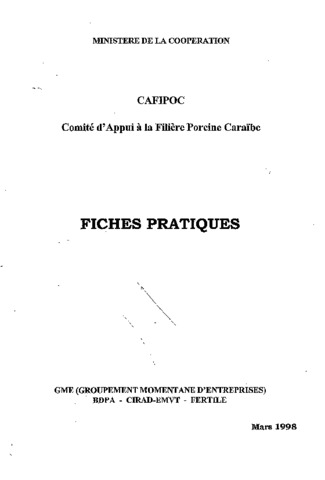 BDPA - FRA, CIRAD-EMVT - FRA, FERTILE - FRA. 1998. CAFIPOC - Comité d'Appui à la Filière Porcine Caraïbe. Fiches pratiques. Montpellier : CIRAD, 106 p.