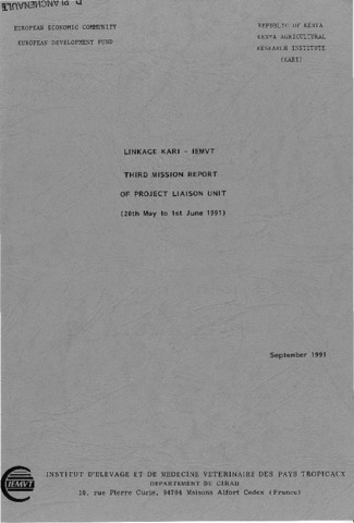 CIRAD-IEMVT - FRA, KARI - KEN. 1991. Linkage Kari-IEMVT. Third mission report of project liaison unit (20th May to 1st June 1991) [Kenya]. Maisons-Alfort : CIRAD-IEMVT, 24 p.
