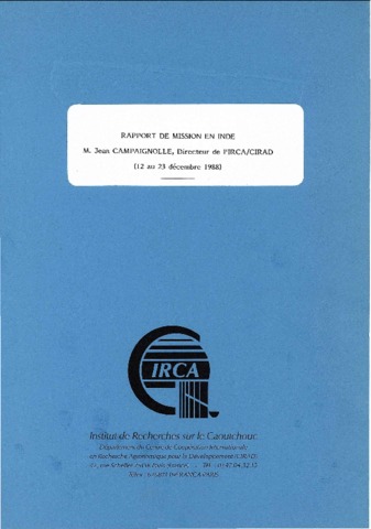Campaignolle Jean. 1988. Rapport de mission en Inde (12 au 23 décembre 1988). Paris : CIRAD-IRCA, 51 p.