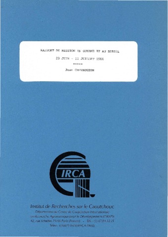 Chevaugeon Jean. 1988. Rapport de mission en Guyane et au Brésil, 23 juin-11 juillet 1988. Paris : CIRAD-IRCA, 24 p.