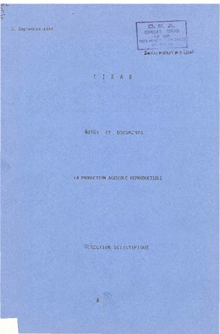 CIRAD-DS - FRA. 1988. La production agricole reproductible. Paris : CIRAD, 51 p. (Notes et documents / CIRAD)