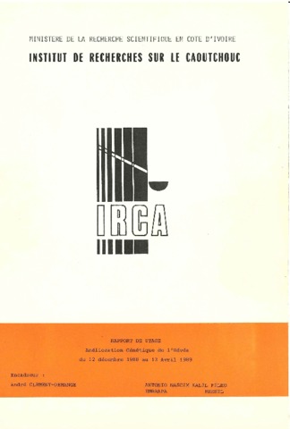 Résumé : Rapport de stage réalisé à l'IRCA-Côte d'Ivoire du 12 décembre 1988 au 13 avri1 1989 au sein du programme.