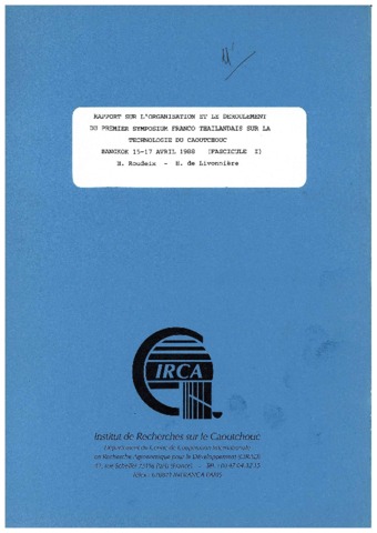 Roudeix Henri, De Livonnière Hugues. 1988. Rapport sur l'organisation et le déroulement du premier symposium franco-thaïlandais sur la technologie du caoutchouc. Bangkok 15-17 avril 1988 (fascicule I). Paris : CIRAD-IRCA, 79 p.