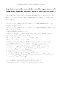 Dolinska Aleksandra, Hassenforder Emeline, Loboguerrero Ana Maria, Sultan Benjamin, Bossuet Jérôme, Cottenceau Jeanne, Bonatti Michelle, Hellin Jon, Mekki Insaf, Drogoul Alexis, Vadez Vincent. 2023. Co-production opportunities seized and missed in decision-support frameworks for climate-change adaptation in agriculture - How do we practice the “best practice”?. Agricultural Systems, 212:103775, 18 p.