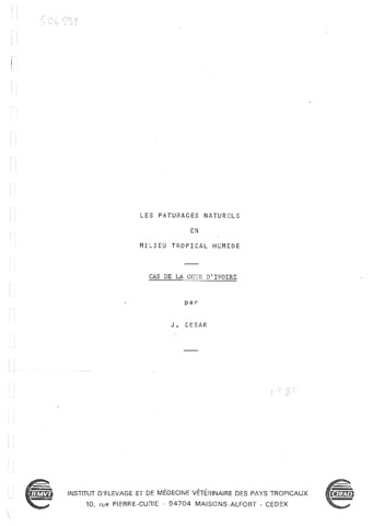 César Jean. 1987. Les pâturages naturels en milieu tropical humide : cas de la Côte d'Ivoire. Maisons-Alfort : CIRAD, 54 p.