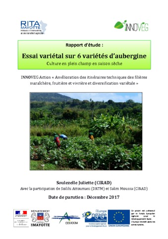 Soulezelle Juliette, Attoumani Soilihi, Moussa Salim. 2017. Rapport d'étude : Essai variétal sur 6 variétés d'aubergine. Culture en plein champ en saison sèche. Mamoudzou : RITA, 23 p.