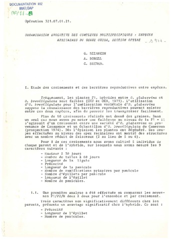 Bezançon Gilles, Borgel A., Second Gérard. 1977. Organisation évolutive des complexes multispécifiques : espèces africaines du genre Oryza, section Oryzae. Paris : GERDAT, 38 p.