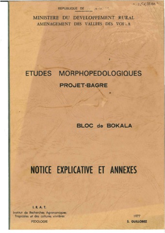Guillobez Serge. 1977. Aménagement des vallées des Volta. Études morphopédologiques. Projet Bagré, notice explicative et annexes. Bloc de Bokala, échelle 1/20000. Ouagadougou : GERDAT, 51 p.
