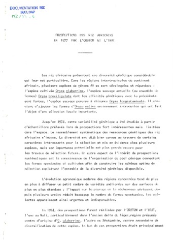 Koffi Goli, Yoboué N., Borgel Alain, Second Gérard, Bezançon Gilles, Bozza Jean-Louis. 1977. Prospections des riz africains en 1977 par l'Orstom et l'Irat. Paris : GERDAT, 10 p.